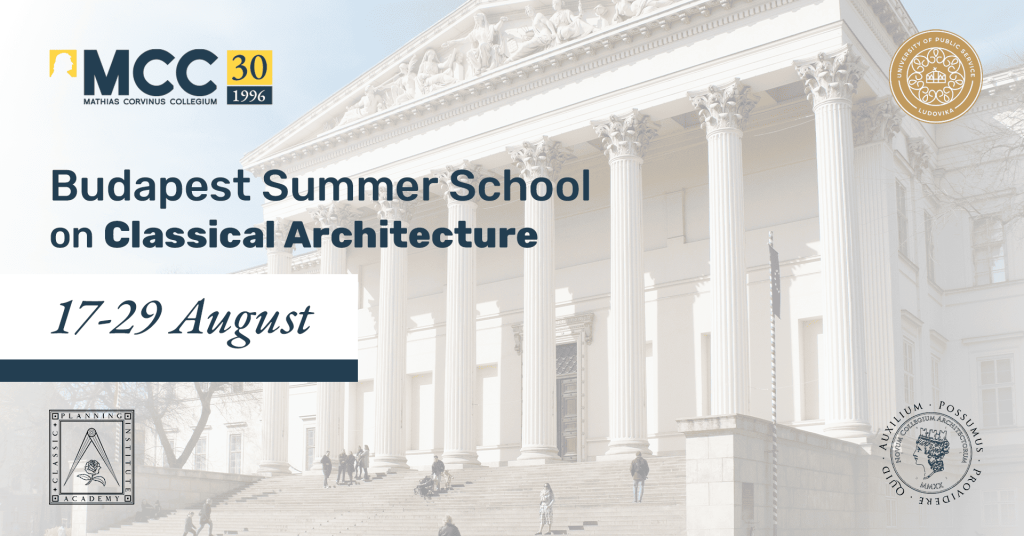 The Classical Architecture Summer School in Budapest is a two week intensive academic program for students seeking a rigorous introduction to classical architecture as a design tool in current day architecture. Organized by the Mathias Corvinus Collegium, procured by the Classic Planning Institute, and presented by Professor Pablo Álvarez Funes, RIBA, the Summer School brings together distinguished international faculty, studio based instruction, and direct engagement with one of Europe’s most significant historic cities.